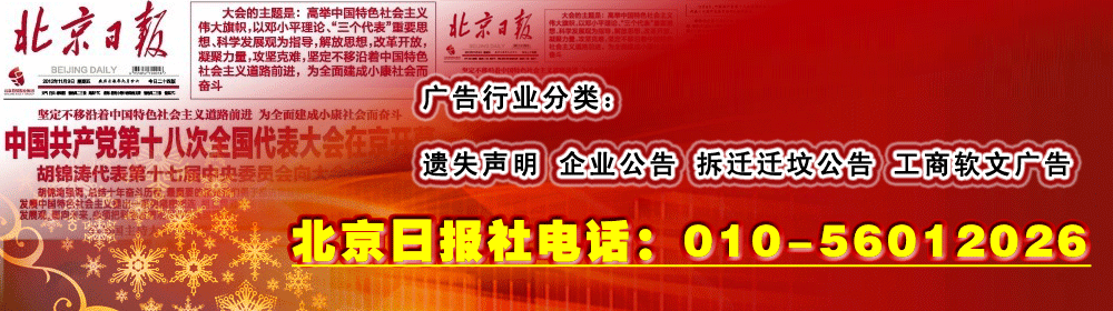 聯系人: 北京日報  聯系電話: 86-010-56012026  手機:13911883454  聯系QQ: 點擊這里給我發消息